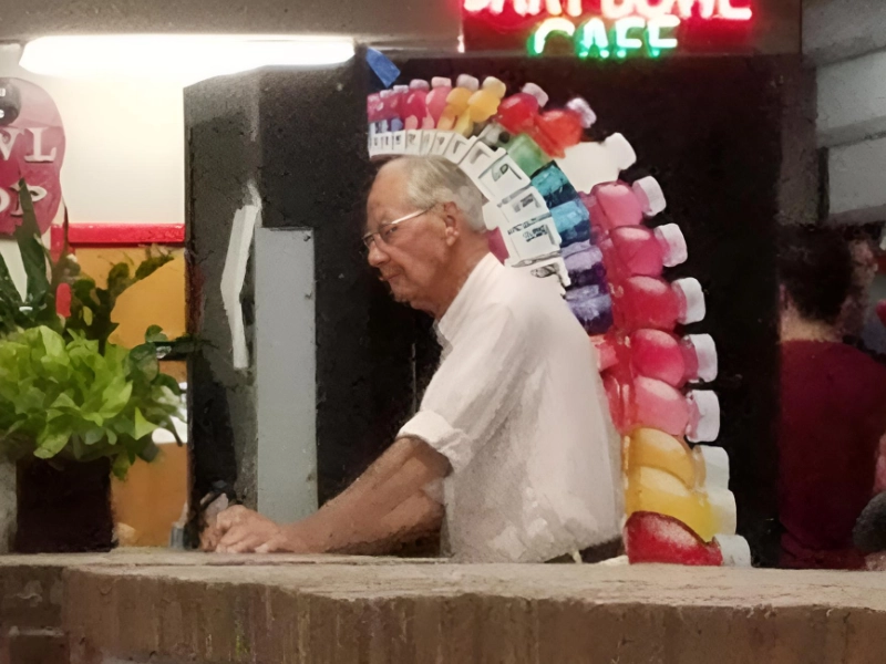 One memorable image shows an elderly man playfully posing as a tribal chief, with drink bottles forming a “headdress.” This amusing scene entertains viewers while cleverly promoting the drinks in the freezer. It’s an example of how humor and creativity can grab attention and create positive brand associations.