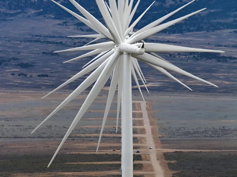 This stunning image from Western Nevada features fourteen wind turbines standing against a windy sky. Though they may appear simple, these turbines play a crucial role in creating a sustainable future.